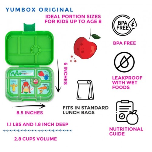 Yumbox Original 6 Compartiments - Vert - Funny Monstrers
