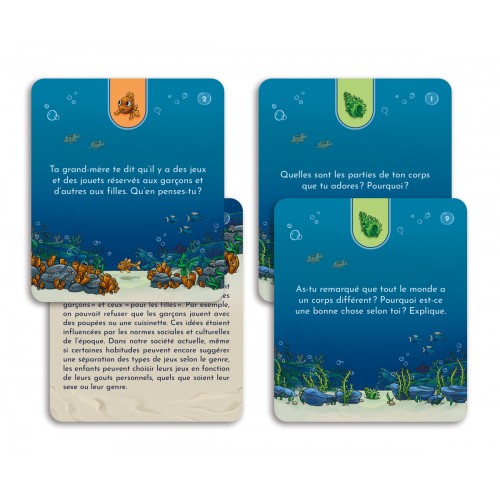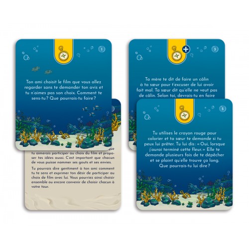 Sous les mers : une aventure d'affirmation de soi est un jeu de parcours destiné aux enfants de 6 ans à 12 ans. À travers un univers sous-marin fantastique, les enfants sont invités à réfléchir, à s'exprimer et à échanger autour de cinq grands thèmes : le consentement, les stéréotypes de genre, l'image corporelle, les émotions et sensations, ainsi que l'identité. Le jeu offre ainsi une occasion d'apprendre à se connaitre, à se respecter et à vivre ensemble tout en s'amusant!
