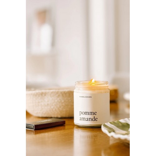 Découvrez la chandelle de soya Pomme et amande, une combinaison entre la fraîcheur croquante de la pomme et la douceur de l'amande.